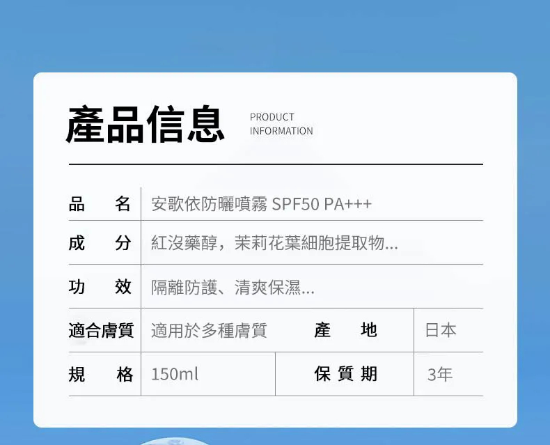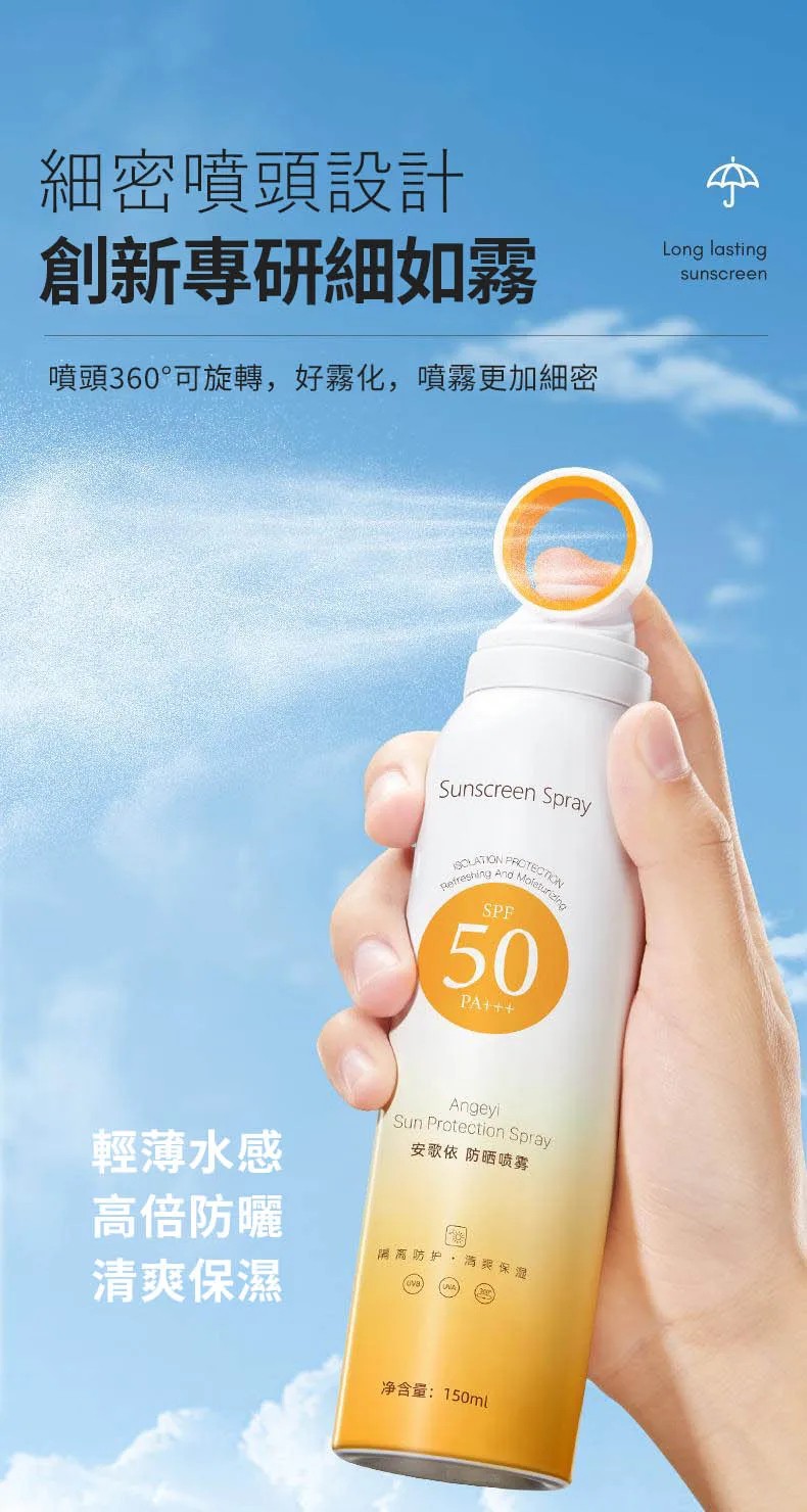 15分鐘前安歌依光圈防曬噴霧,細密噴頭設計 噴頭360°可旋轉自然膚惑,隔離防曬一瓶搞定 - 特大優惠「安歌依光圈防曬噴霧」4入96%用戶的選擇!NT$1198【限時免運】