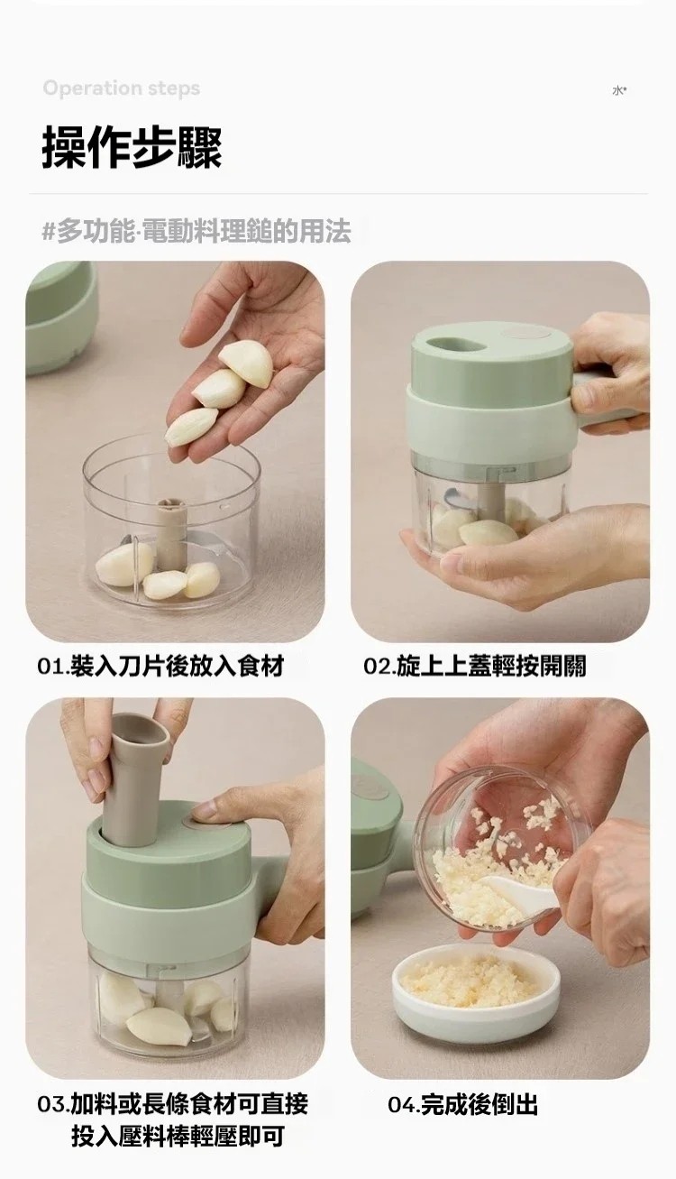 25分鐘前【多功能加特林切菜器】 搗蒜神器節省時間 家用無線電動 操作簡便多功能三合一手持迷你料理機 避免浪費清洗方便外觀精美 - 「解放您的雙手 輕鬆解決切菜煩惱」優惠套餐 2入組-NT$1398