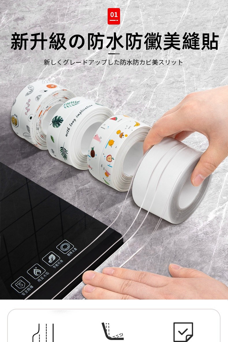 5分鐘前限時搶購 美縫貼防水防霉廚房水槽洗碗灶台封邊擋水條,衛生間馬桶邊緣縫隙貼 - 【嘗鮮價】3入組-NT$980